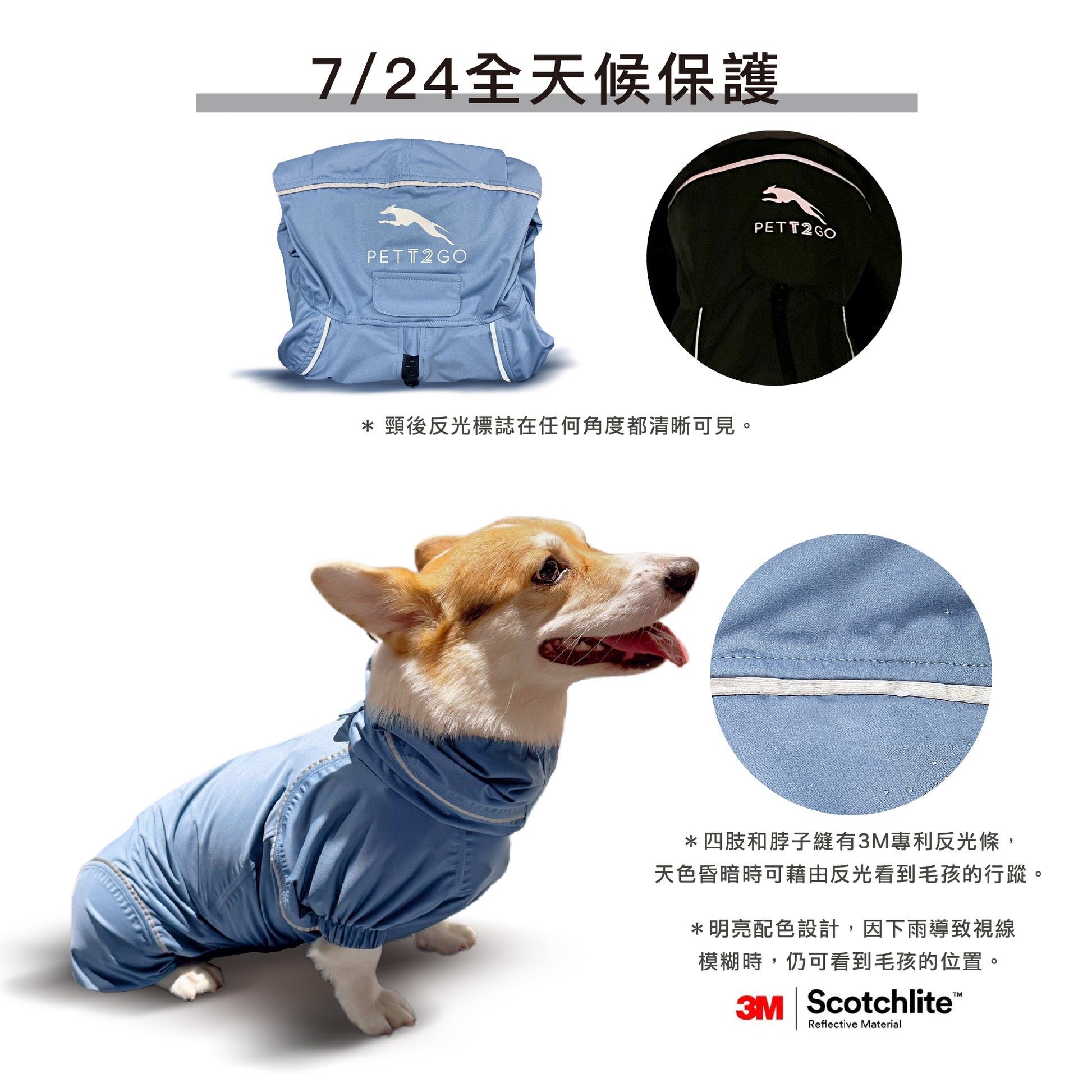 - 狗雨衣縫有3M反光條,並使用明亮的對比色,在低光和惡劣天氣條件下提高可見度和安全性。