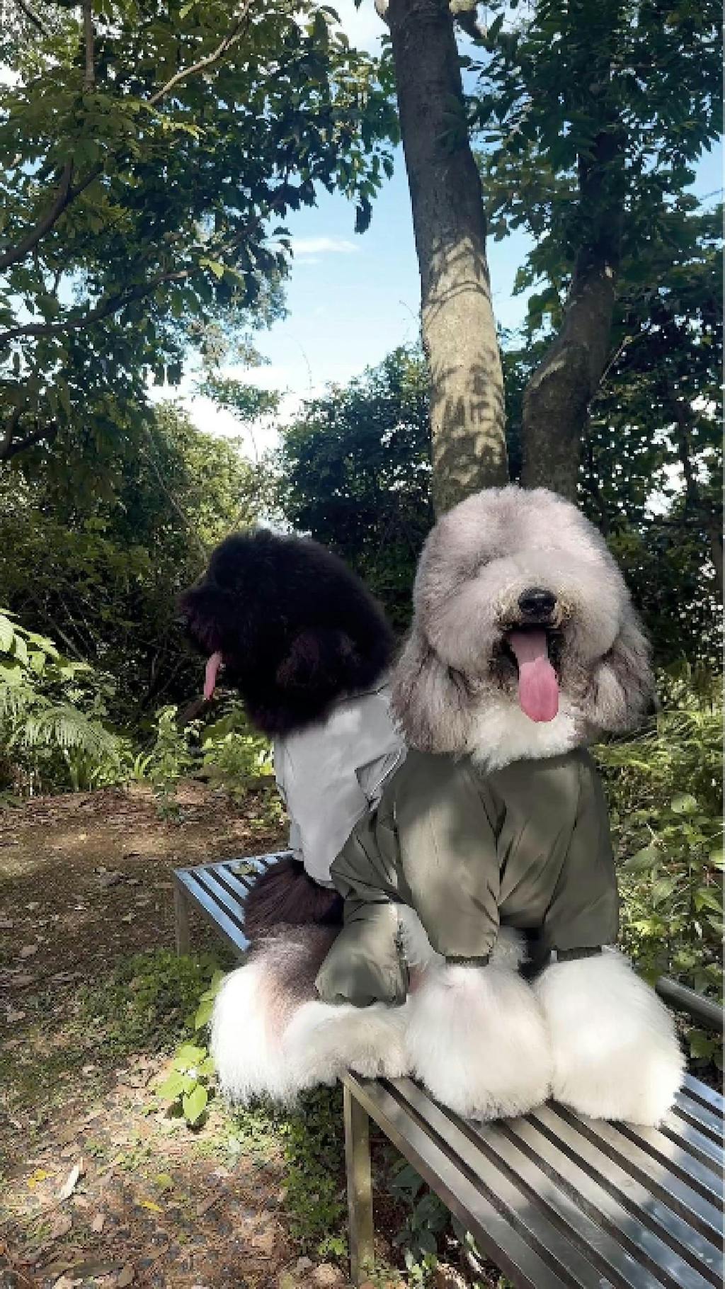 哇穿起來真是太好看了哈,雖然柴柴一臉哀怨樣,後面其他狗來找他玩,還不是馬上就跑去玩了。衣服很輕所以這款包四腳的設計能被柴柴接受,之前南港集市就有試穿過,這些天連續下雨才讓我有了購買的衝動哈哈啊