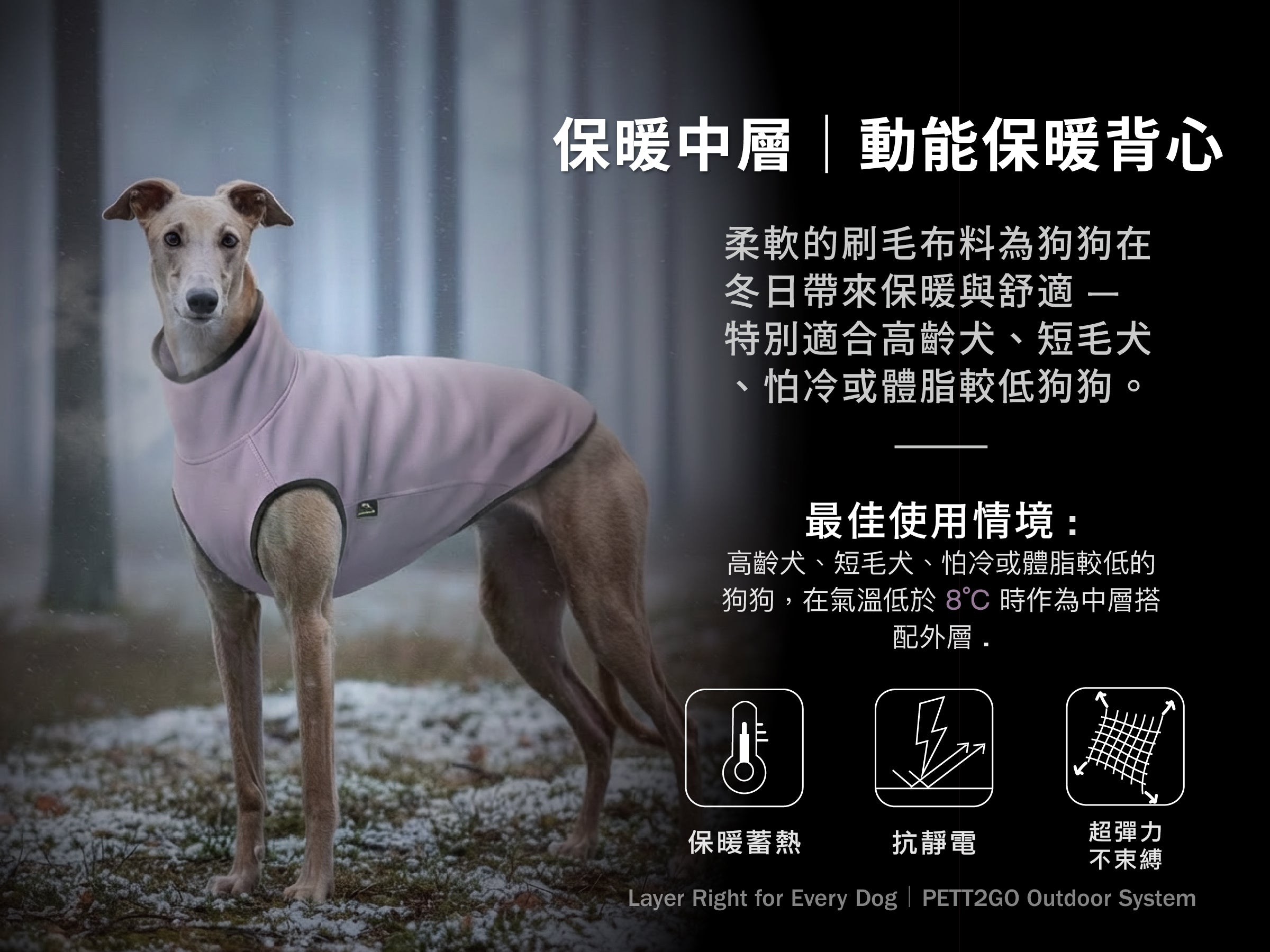 天氣再冷, 寶貝也不用悶在家裡。我們打造這件背心,只為了讓狗狗快樂、保暖、自由奔跑 —無懼壞天氣、隨時探索世界。
