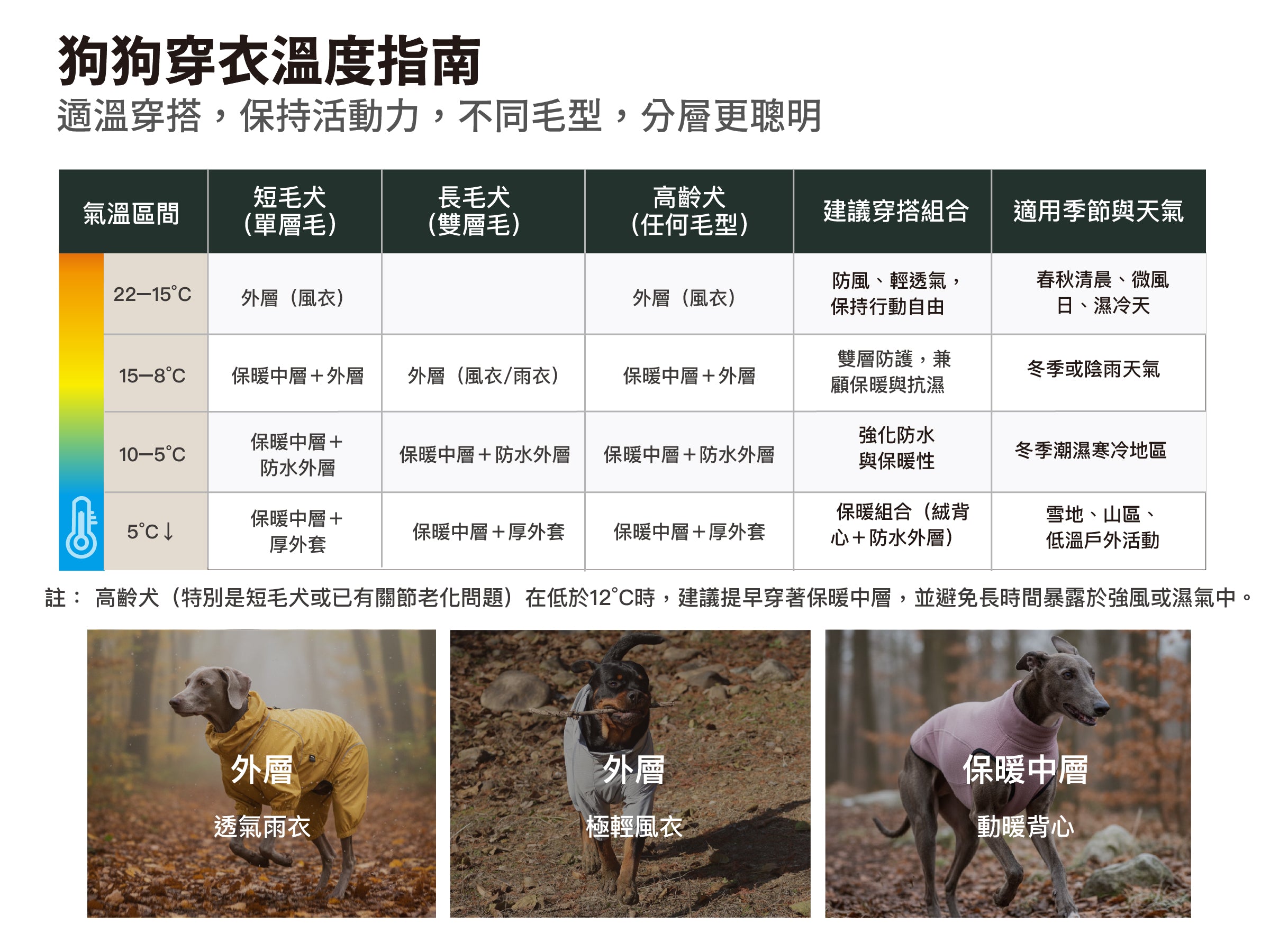 ⚠️ 注意:即使有穿著保暖衣物,仍不建議讓狗狗在低溫環境中停留太久。
